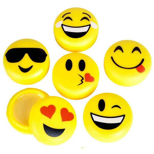 1.75" emoticon lip gloss. Assortment of facial expressions.