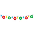 Our String Ornament Garland will add some fun to your holiday decorations! It features brightly colored die-cut Christmas ornaments and lights attached to a 100' string. A great way to decorate banisters, doorways, windows, entrances and more. 1 per package.