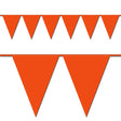 Our orange and white triangle pennant flags are a great way to attract attention to your event. They can easily be strung from poles, trees, or other tall objects. Made of heavy-duty plastic. Each Flag measures 12"x 18"" on a 100 ft. Line (48 Flags Per Line)