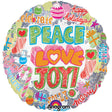 Add a touch of colorful fun to your Christmas decorations with this 18'' Holiday Doodle balloon. The balloon features the words "Peace Love Joy!" in the center and is bordered by doodles of stockings, presents, candy canes and etc. 1 balloon is included per package.