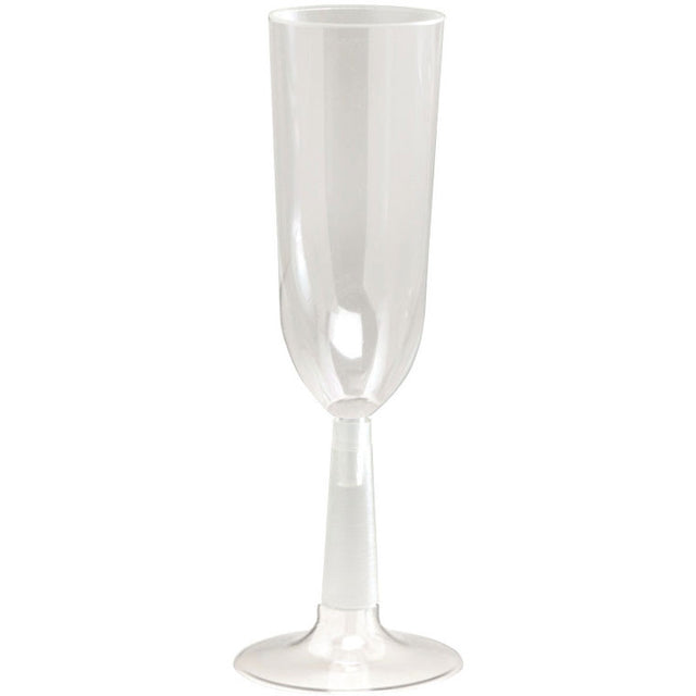 Sip sparkling drinks out of these Clear Champagne Flutes! Package includes 4 clear plastic champagne flutes with the look of crystal but the convenience of plastic! Each holds 7 ounces of your choice drink.