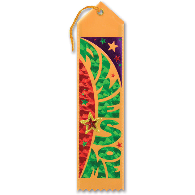 Present a special award with our Awesome Jeweled Ribbon! Features a bright orange satin ribbon with a foil embossed design and the message "Awesome". Measures 2" x 8". Includes 1 ribbon per package.
