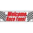 Get set for a face paced event with out Welcome Race Fans Giant Banner. This plastic banners features classic black and white checked flags and the phrase "Welcome Race Fans!" in bright red letters. This banner measures approx. 5' wide x 20" high. 1 per package.