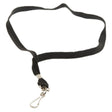 This standard size Black Lanyard is great for holding your keys and key chains! Features a black fabric lanyard with a metal clip at the end. Includes 12 per package.