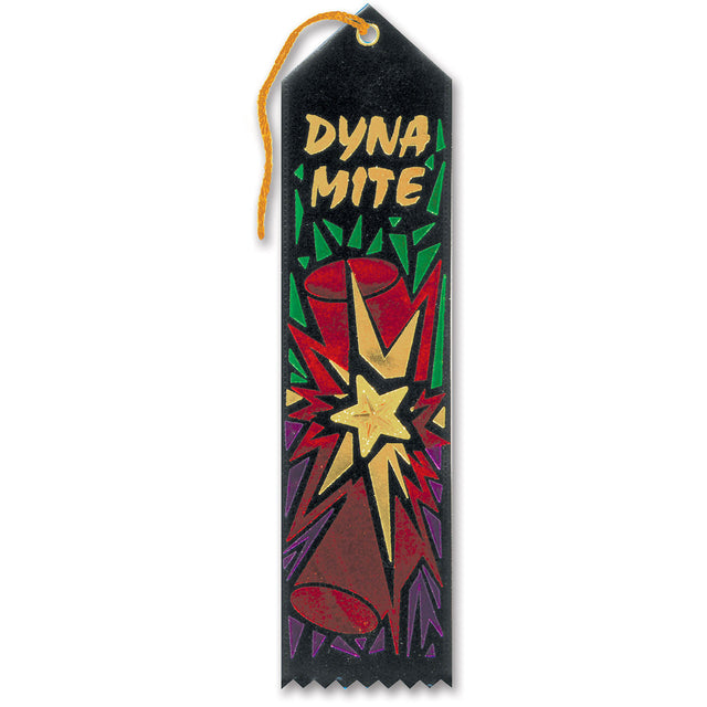 Congratulate anyone with our Dynamite Jeweled Ribbon! Features a black satin ribbon with the message "Dynamite" and a foil embossed dynamite design. Measures 2" x 8". Includes 1 ribbon per package.