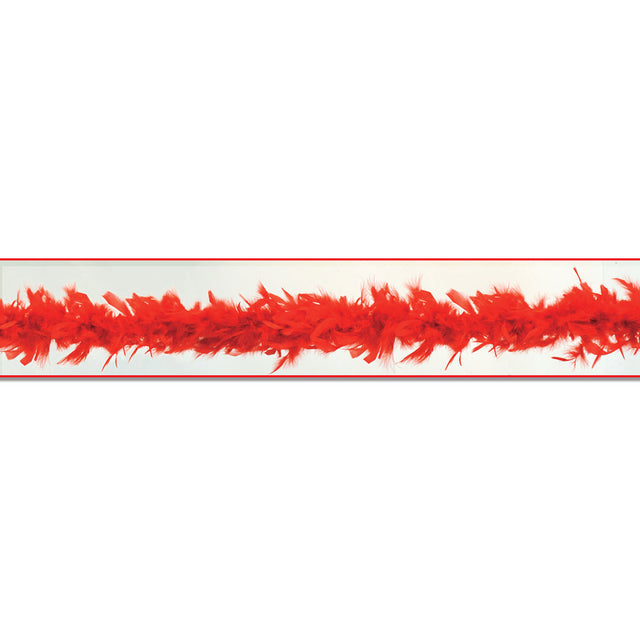 Give yourself an authentic 20's look with this fashionable Fancy Feather Boa. The boa measures 6 feet long and comes with 40 grams of red feathers. 1 included per package.