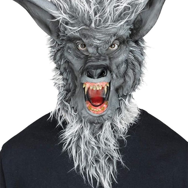Ferocious Fangs Deluxe Mask with Teeth Grey Werewolf (1ct)