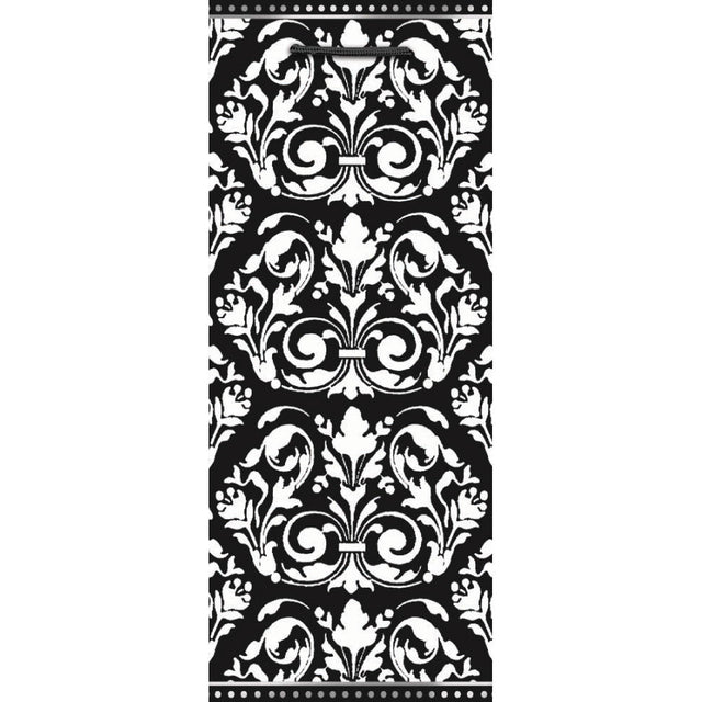 Carry your bottle to your destination with style using our Silver Formal Affair Bottle Bag! The bag features elegant white and black damask print. Measures 12.5'' tall x 5.25'' wide x 3.5'' deep and is composed of paper material. 1 per package.