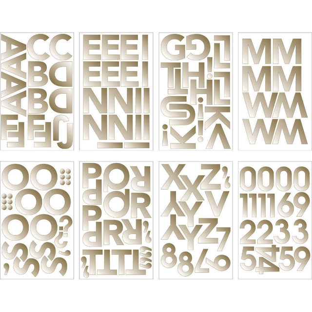 Create an elegant and trendy banner with our French Bull Gold Foil Letter and Number Banner Stickers! Features gold ombre letters, numbers, and punctuation. Includes 8 sheets per package.