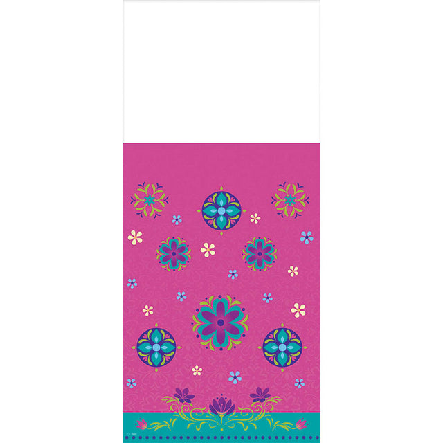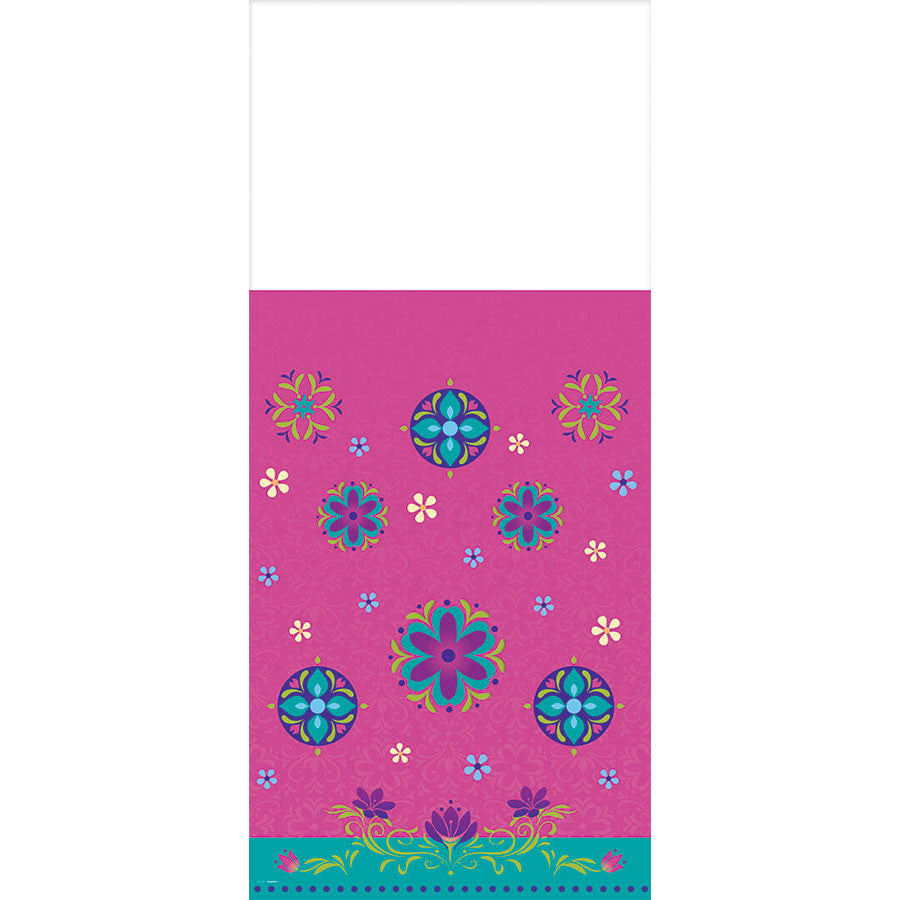 Even your table will be decorated with our Frozen Plastic Tablecover! Each tablecover features a purple background with teal background and all over floral pattern. Made of lightweight plastic. Great for indoor or outdoor use! Measures 54" x 96". Includes 1 tablecover per package.