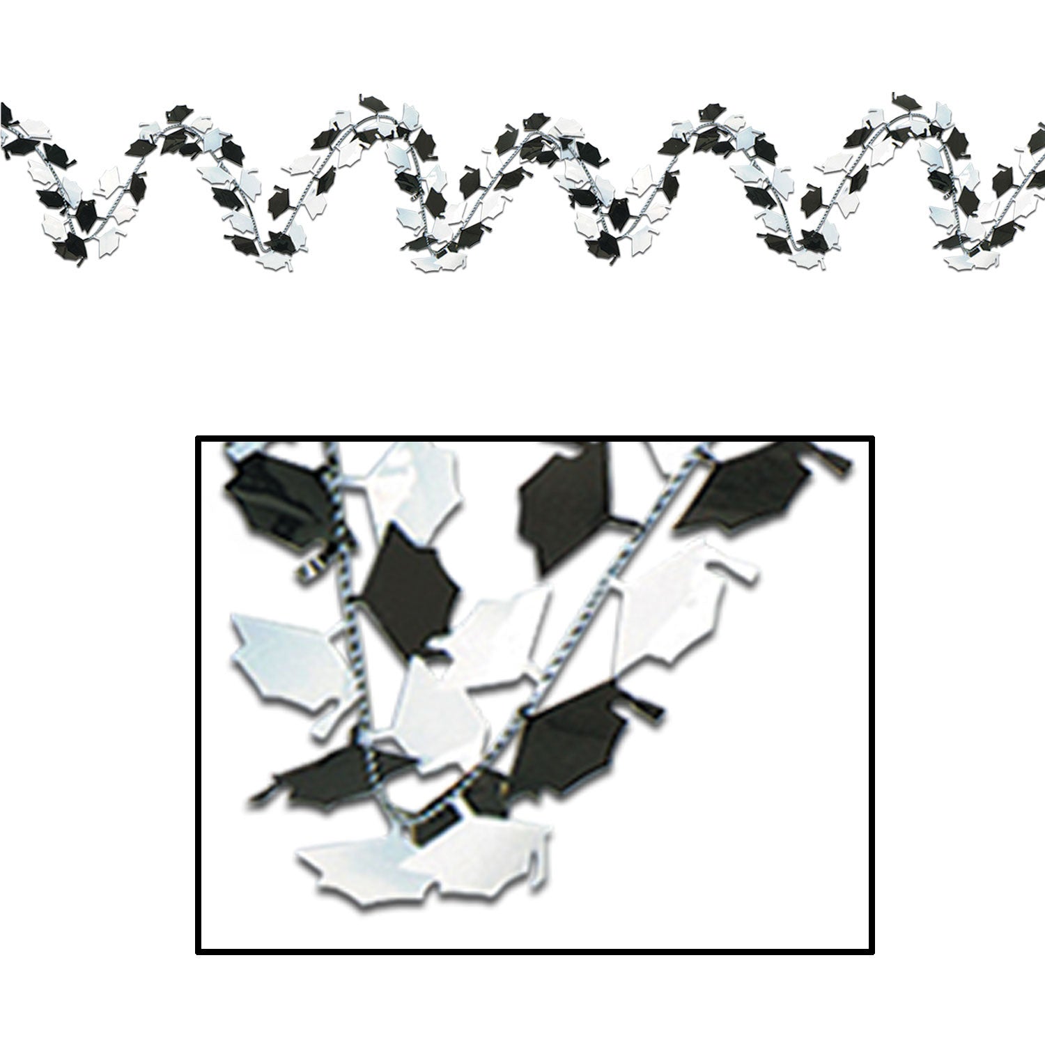 This Metallic Graduation Cap Garland is great for celebrating a big accomplishment. Package includes 1 garland. Measures 25' long.