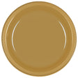 Our Gold Plastic Dinner Plates are a great way to add some color to your table. These large plates are perfect for meals, snacks, and desserts. Great alone or mix and match with coordinating printed tableware. Measures 9". 20 per package.
