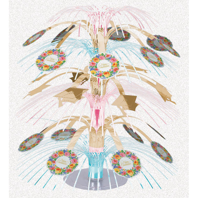 Add our Graduation Garden Cascade Centerpiece to your tables! Each centerpiece features colorful foil fringe and graduation cardstock cutouts. Measures 18". Includes 1 centerpiece per package.
