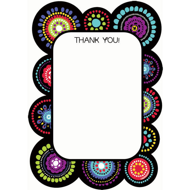 Thank friends and family for attending your birthday party or other celebration using our Graphic Fun Thank You Notes! Each thank you note measures 5.25'' x 4'' and features the message "Thank You!" in black writing against a white background bordered with black scalloped edging decorated with brightly colored circles and designs. 20 thank you notes and white envelopes are included per package.
