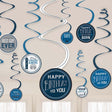 Give your birthday celebration a vintage look with these Happy Birthday Man Spiral Decorations! These silver and blue swirls feature whimsical birthday cutouts. Package includes 12 swirls decorations with 5in cutouts.