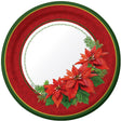 Serve a holiday treat on our Holiday Poinsettia Dessert Plates! Each plate features a red and green border with beautiful red poinsettias. Measures 7". Includes 8 round paper plates per package.