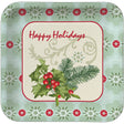 A delicious holiday dinner deserves to be served on the perfect plates! Our Holly Collage Dinner Plates are square and display the image of Christmastime holly beneath against a brightly embellished snowflake pattern background. The message "Happy Holidays" is featured above the holly in red lettering. Each paper plate measures 9'' and is perfect to use for holiday dinners, parties and banquets. 8 plates are included per package.