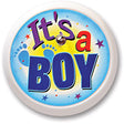 Make sure the mother to be stands out in the crowd with this It's A Boy Blinking Button! The button measures 2 inches and displays the message "It's a boy" in dark purple, red and dark blue writing. The background is yellow and blue and decorated with baby foot prints and stars. A blinking light sits in the upper center of the button. 1 button is included per package.