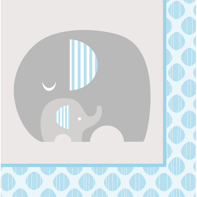 These Little Peanut Boy Luncheon Napkins feature a blue polka dot border with a grey and blue mommy and baby elephant printed in the center. Napkins measure 6.5 inches x 6.5 inches. Includes 16 napkins per package.