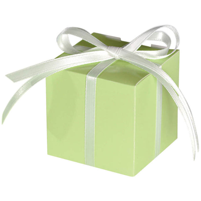 Our Leaf Green Mega Favor Boxes are perfect for sending your guest home with fun goodies! With a simple and elegant design, these favor boxes are perfect for weddings, showers, and even birthdays! Measures 2.5" x 2.5". Includes 100 boxes per package. Ribbon not included.