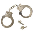 Get caught having too much fun with these Metal Handcuffs with Key! Package includes 1 pair of silver metal adjustable handcuffs and 2 small keys. Includes a safety release on handcuffs. Measures 9.5" x 6". Includes 1 set of handcuffs per package.