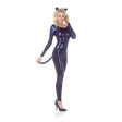 Meow! Become the Minx of the Macabre at your next Halloween or cat-themed party. This sleek ebony Minx Jumpsuit Womens X-Large 14-16 comes complete with a jumpsuit, ears, and a tail. Whether you want to take on the role of Cat Woman, an everyday feline, or a 'minx'-style club dancer at your next soiree, this extra large adult costume is the purr-fect choice. Includes 1 per package.