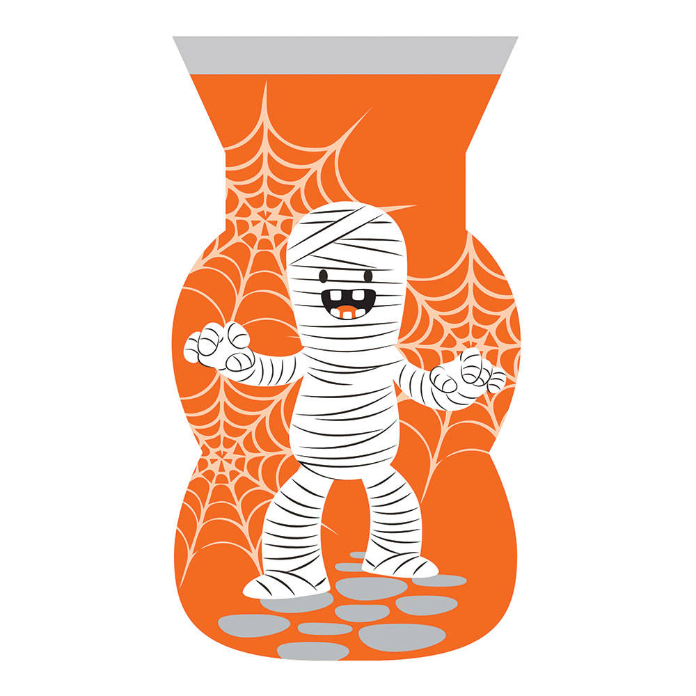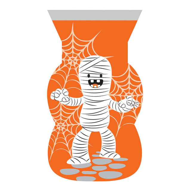 Hand out spooky treats in our Mummy Shaped Zipper Bag! Features an orange background with spiderwebs and a smiling mummy. Measures 5" x 9". Zipper closure. Includes 12 cello bags per package.