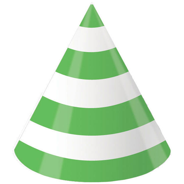 Top your party off with our Paw-ty Time Party Hats! These party hats are a great way to make everyone feel included in your party festivities. Features lime green and white horizontal stripes across each party hat. One size fits most children. Includes 8 party hats per package.