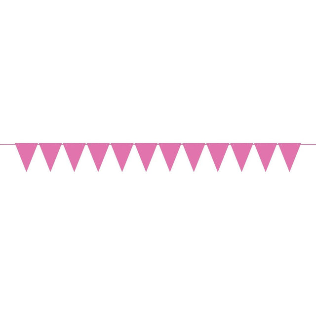 Decorate any celebration with our Pink Mini Paper Pennant Banner! Features 12 pink pennants. Made of cardstock. Pennants measure 4" x 5" and ribbon measures 12.5' long. Includes 1 banner per package.