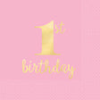 Add our Premium 1st Birthday Pink Hot Stamped Beverage Napkins to your birthday tables! Features pink napkins with the message "1st Birthday" in gold letters. Measures 5" x 5". Includes 16 - 2 ply paper napkins per package.