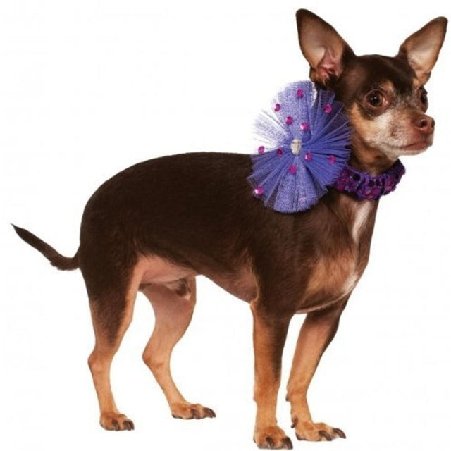 We know your pet deserves the best! Primp your pooch with this lovely and sparkly Purple Sequin Necklace. A glimmering polka-dotted purple collar that comes embellished with a gem-studded pinwheel flourish of contoured blue tulle, this medium/large necklace is perfect for a Halloween party or pet parade. That's one fancy Fido! Includes 1 per package.