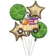 Add this Safari Adventure Bouquet of Balloons to your jungle theme party. Package includes 2 round leaf balloons, 2 beige animal print balloons, and 1 large safari truck balloon. Includes 5 balloon per package. All ship flat