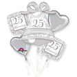 Celebrate 25 years of union with your love with this Silver Scroll 25th Anniversary Bouquet of Balloons! Each package comes with the following: one 22 in wide x 27 in long wedding bell shaped balloon, two 17 in square balloons and two 17 in heart shaped balloon. 5 pieces are included per package. Shipped flat.