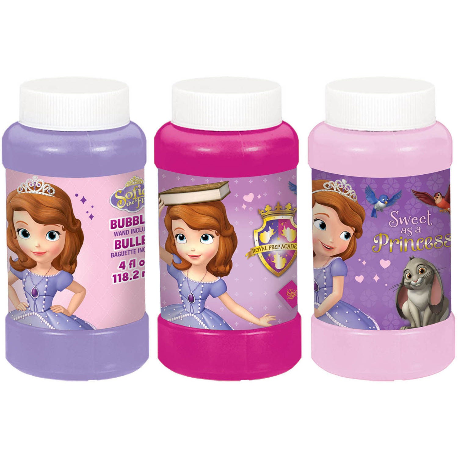Bubbles are fun for everyone! Give these Sofia the First Bubbles out to your guests during your party. Each assorted plastic bubble container features a picture of Sofia, and holds 4 ounces of bubbles. Includes 6 containers per package.