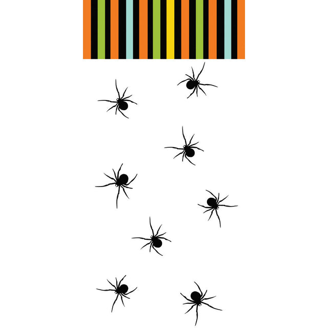 Send home something sweet with our Spooky Spiders Cello Bags! Features clear cello bags with a spider print and striped top and twist ties. Measures 4" x 9". Includes 20 treat bags and twist ties per package.