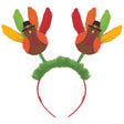 Wear our Turkey Headbopper on Thanksgiving Day! Features a red plastic headband with green tulle and two felt turkeys. One size fits most. Includes 1 headband per package.